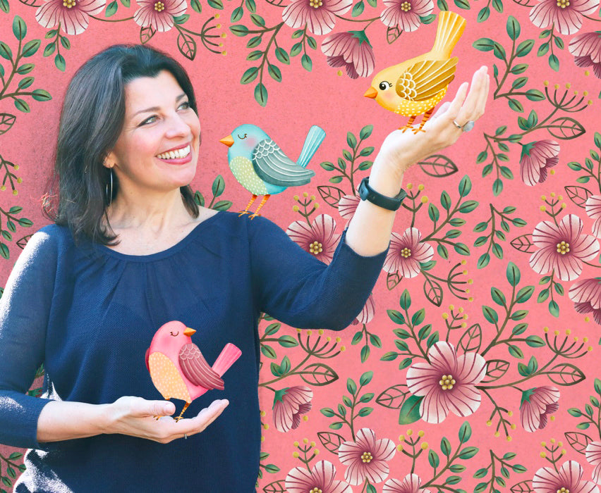 Fiori, frutta e animali sorridenti prendono vita tra matite e tavoletta grafica, trasformandosi in tessuti allegri e colorati che fanno venire voglia di cucire.