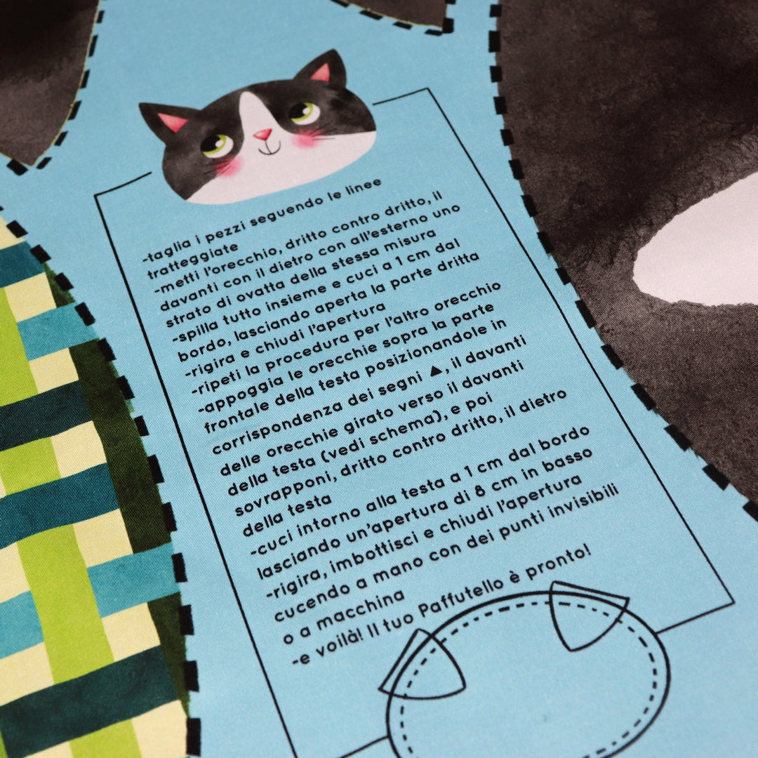 Pannello di stoffa "I Paffutelli", cuscino GATTO bianco e nero da tagliare, cucire e imbottire