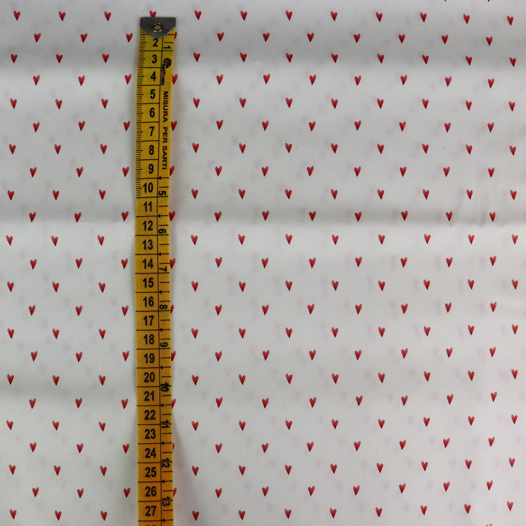 -un tessuto secondario bianco con cuoricini rossi di 50x50 cm